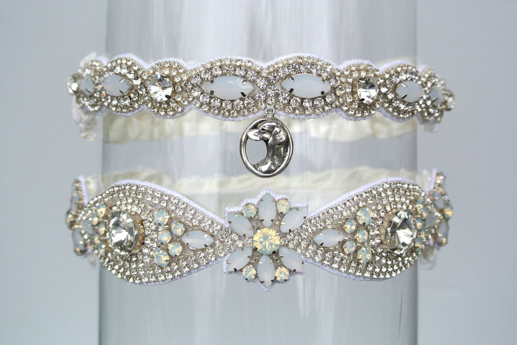 Lastly, because Kristina's gown included opals (she was wearing Hayley Paige's Reagan gown which is to-die-for. Seriously. Google it.) she picked the Athena garter as her main keepsake design. All in all, this semi-custom wedding garter set screams Christina, her personality, her love of all things girly and the utter magical-allure of her wedding day.