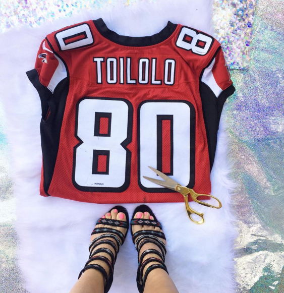 It's not everyday that you get a chance to cut up a real NFL jersey. Which is why I simply adored working with La Gartier bride Stephanie Ming last month! Stephanie married Levine Toilolo, who...if you love the Atlanta Falcons, is a name you are familiar with already.