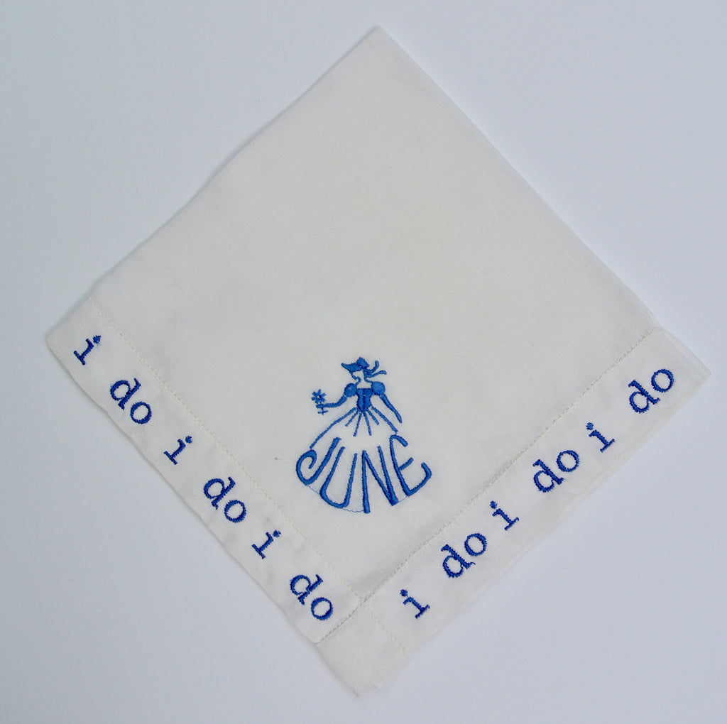 Our one-of-a-kind "Wife of the Party" handkerchief is a vintage design! This gorgeous light green hankie was discovered in a basement antique store in Seattle, Washington and embroidered in our studio in Atlanta, Georgia. If you love it as much as we do, click the image above to be directed to the listing!