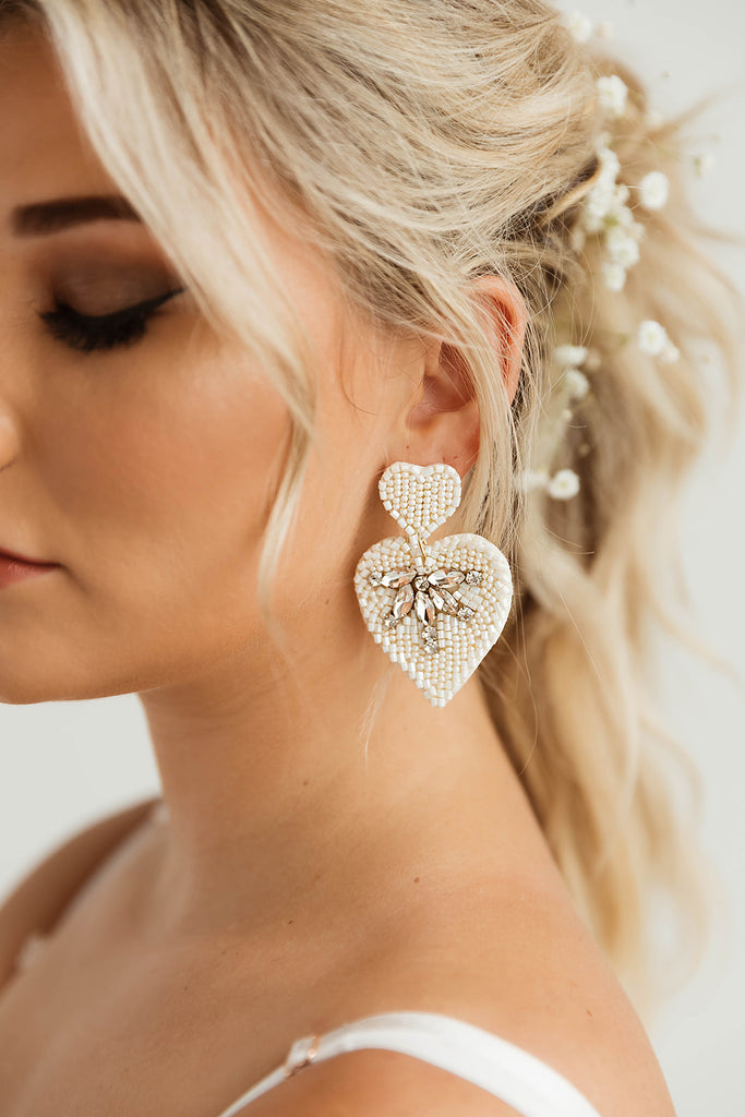 You love sparkle. You radiate positivity. You aren't afraid to be noticed.Sound like you? Then we have just the earrings for you! Created to be worn on all of the days leading up to your wedding (a.k.a. engaged girl style) our darling earring collection the perfect choice for someone who wants something full of sparkle, with a slightly celestial touch. The best part? When the sunlight hits the gemstones just right, everything sparkles. Just like you. Scroll through the images below to find the earrings that say YOU.Looking to slay your engaged girl style? We have you covered with our "Straight To My Heart" earrings! Created to fill all of the days prior to your wedding with unmistakable style and sass, these earrings will catch side eyes from everyone at, say, your bridal shower, your bachelorette party, your rehearsal dinner, or on the first days back at the office after announcing your engagement.) The best part? We purposefully kept the price low on these beauties so you can spend EXTRA on the wedding day itself.